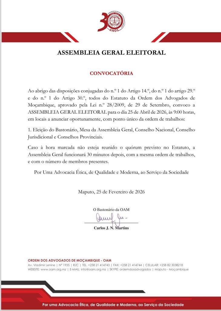 ASSEMBLEIA GERAL ELEITORAL CONVOCATÓRIA Ao abrigo das disposições conjugadas do n.º 1 do Artigo 14.º, do n.º 1 do artigo 29.º e do n.º 1 do Artigo 30.º, todos do […]