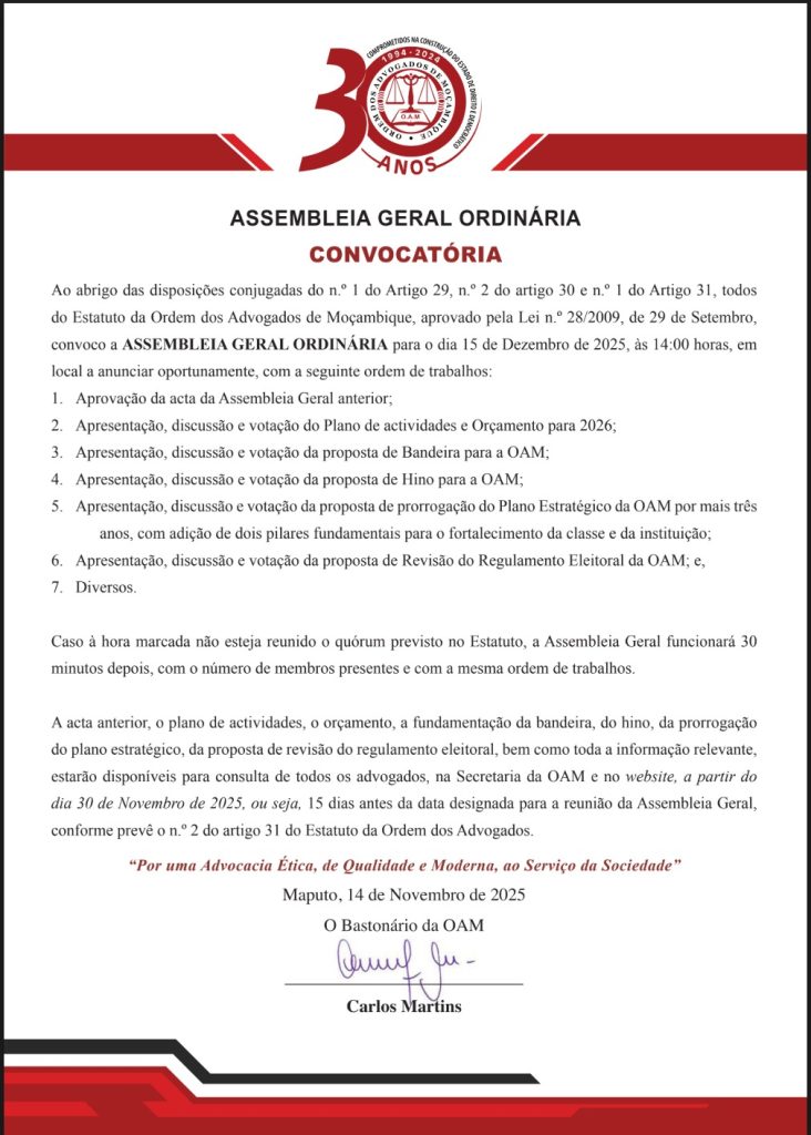 Ilustre Advogado e Advogado Estagiário Leia e divulgue o Boletim Informativo, Edição de Outubro de 2025 Obrigado Para aceder a edição completa, queira por obséquio, a cessar o Link: Saiba […]