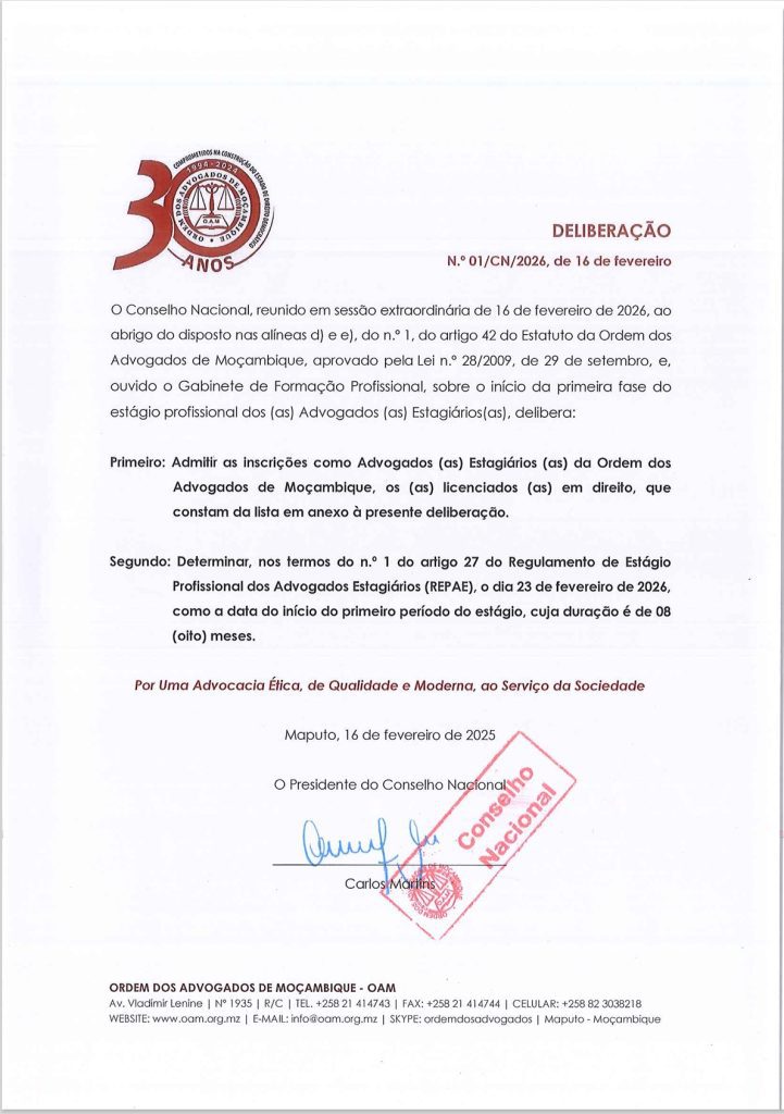 DELIBERAÇÃO N.º 25/CN/2025, de 28 de Maio O Conselho Nacional, reuniu-se em sessão extraordinária de 23 de abril de 2025, ao abrigo do disposto nas alíneas c) e e), do […]