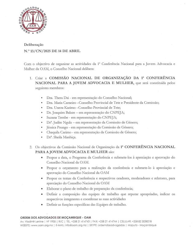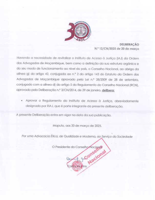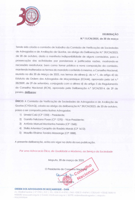 CONSELHO NACIONAL Deliberação N.° 23/CN/2025 de 28 de Maio O.A.M