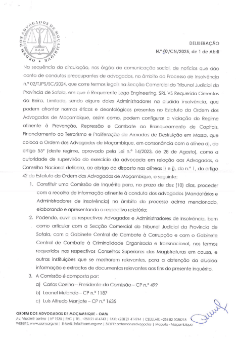 Deliberação nº 10_CN_2025_01 de Abril_Comissão de Inquérito Insolvência Beira